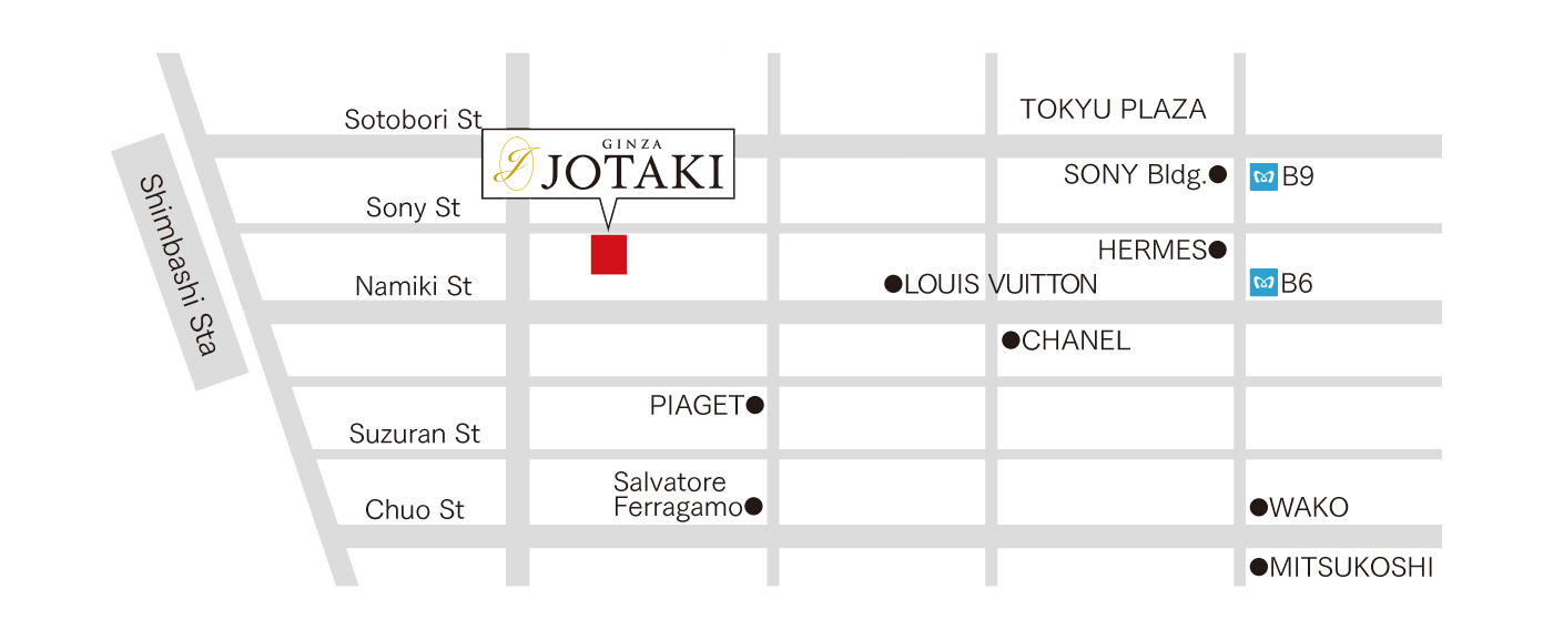 ・Get off at the Ginza subway station B6 or B9 exit and walk 5 minutes